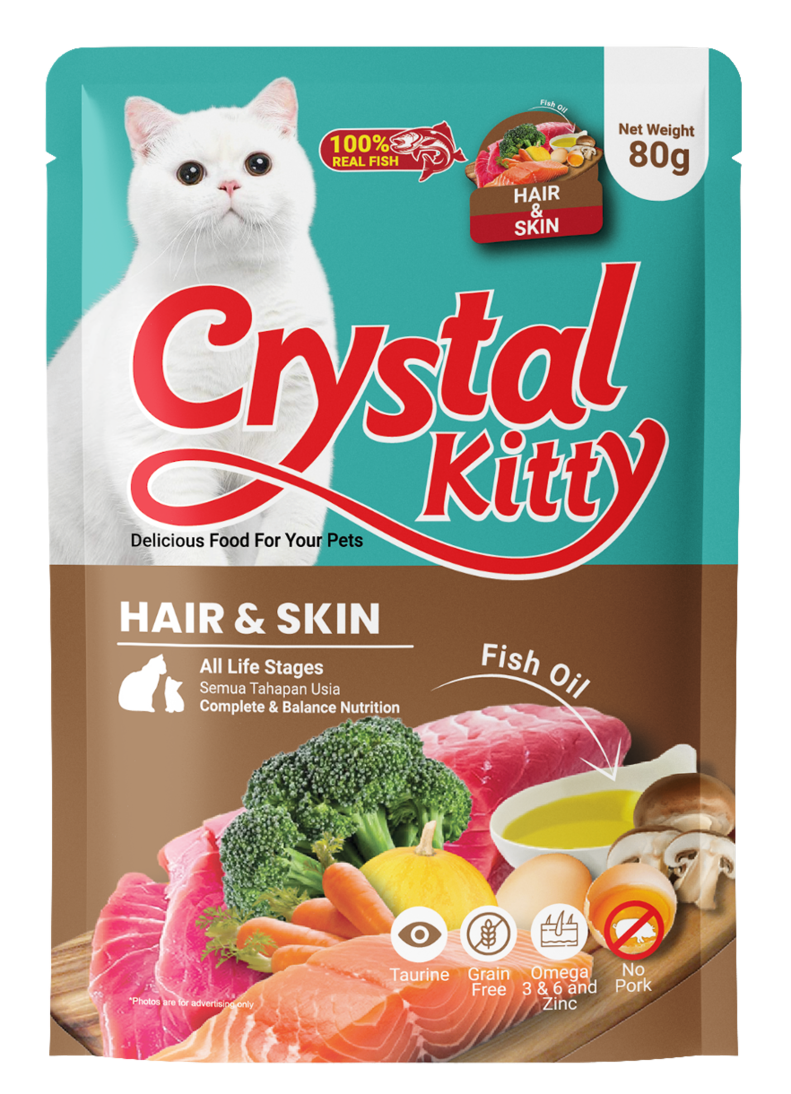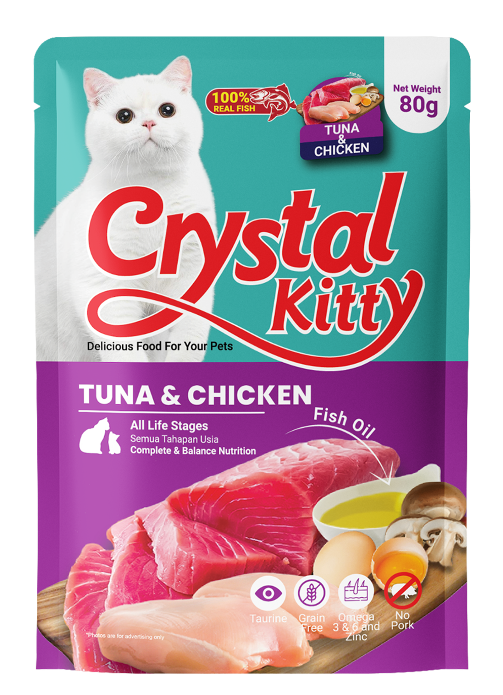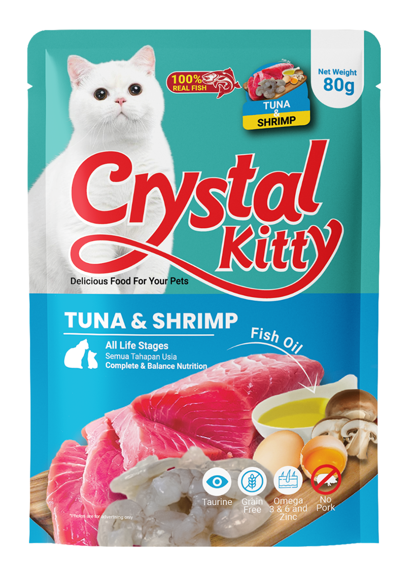Crystal Kitty Pouch adalah makanan basah premium untuk kucing dari G2G Pet Indonesia, dibuat dengan bahan-bahan berkualitas tinggi dan segar. Makanan ini menawarkan nutrisi lengkap dan gizi seimbang untuk mendukung kesehatan dan kebahagiaan kucing kesayangan Anda di setiap tahap kehidupannya.